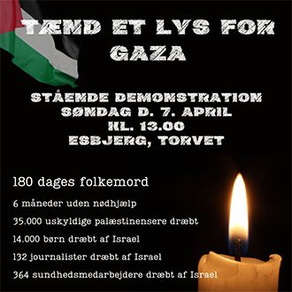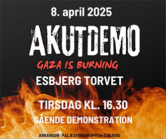Israel har dræbt 1.391 palæstinensere og såret 3.434 i Gaza siden 18. marts 2025?? Vi kan ikke blive ved med at se på, mens folk brænder ?? Medierne dækker ikke, hvad der sker i Gaza og på Vestbredden. Vi er nødt til at skabe opmærksomhed omkring det! Vi bliver nødt til at sige fra! Kom med på gaden i morgen på Esbjerg torv! Lad os vise vores regering, at vi ikke vil tie! Lad os vise palæstinenserne, at vi ikke har glemt dem?