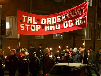 der, som det bl.a. kan ses p� plakaten, demonstration