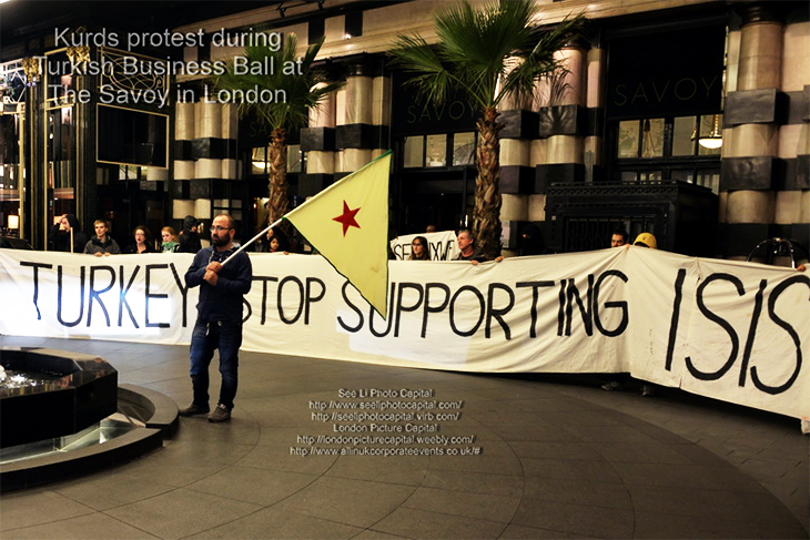 Sidst ændret d. 28/9 - 2020 foto: Foto See Li, Kurds protest at Turkish Business Ball at The Savoy, 25/10 - 2014, link til billede |
